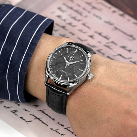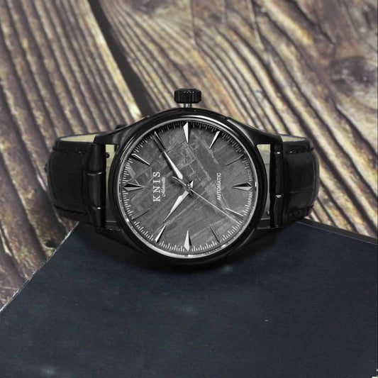 KNIS メテオライト 隕石 日本製 自動巻き 腕時計 メンズ 革ベルト レザー ブラック KN001-MTBKLE