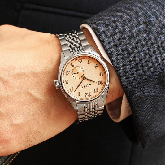 KNIS KODOU 自動巻き 日本製 スモールセコンド ライスブレスレット サーモンピンク 桜霞 KN009-SPKRC