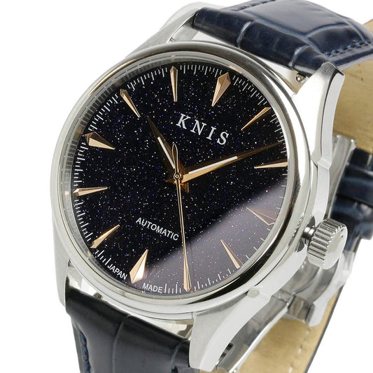 KNIS アベンチュリンダイヤル 日本製 自動巻き 腕時計 メンズ シルバー レザー ブルー KN001-AVSVBLLE