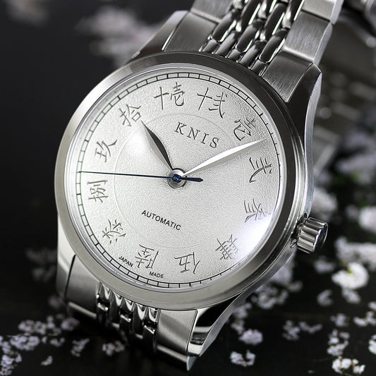 KNIS 刻 -KOKU- 自動巻き 日本製 彫金インデックス ライスブレスレット ホワイト 漢字 KN005-KJWHRC