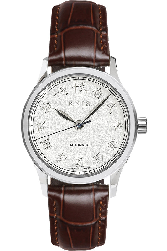 KNIS 刻 -KOKU- 自動巻き 日本製 彫金インデックス レザー ホワイト 漢字 KN005-KJWHLE