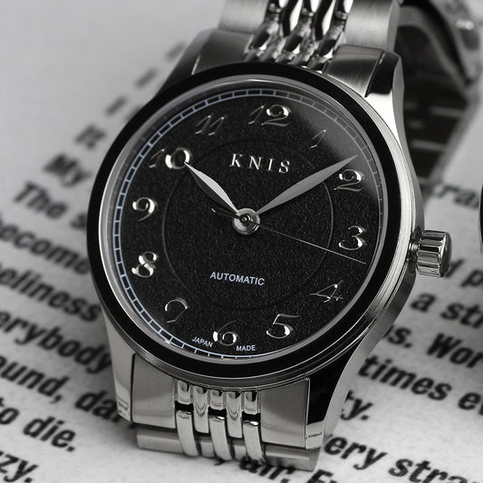 KNIS 刻 -KOKU- 自動巻き 日本製 彫金インデックス ライスブレスレット ブラック ブレゲ数字 KN005-BGBKRC