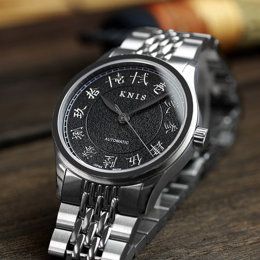 KNIS 刻 -KOKU- 自動巻き 日本製 彫金インデックス ライスブレスレット ブラック 漢字 KN005-KJBKRC