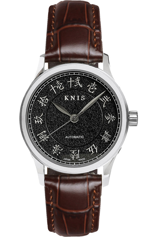 KNIS 刻 -KOKU- 自動巻き 日本製 彫金インデックス レザー ブラック 漢字 KN005-KJBKLE