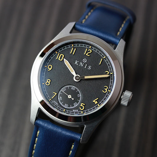 KNIS Retro Military Watch - Black Dial with Navy Leather Strap KN003-BKNVLE