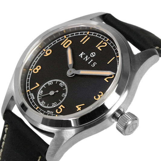 KNIS Retro Military Watch - Black Dial with Black Leather Strap KN003-BKBKLE