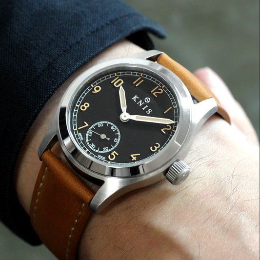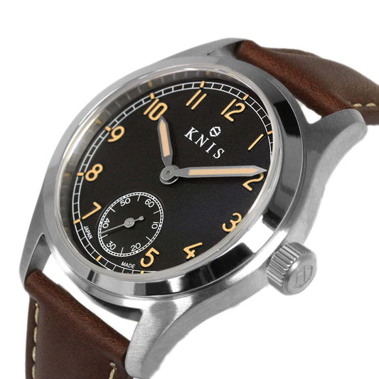 KNIS Retro Military Watch - Black Dial with Brown Leather Strap KN003-BKBRLE