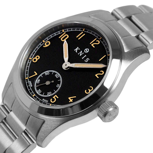 KNIS Retro Military Watch - Black Dial with Stainless Steel Band KN003-BKSS