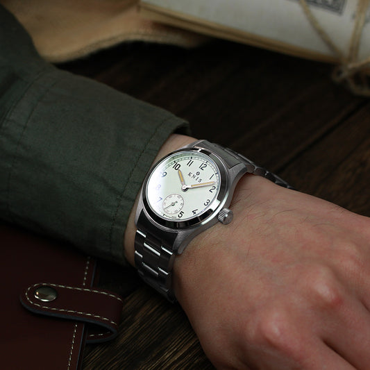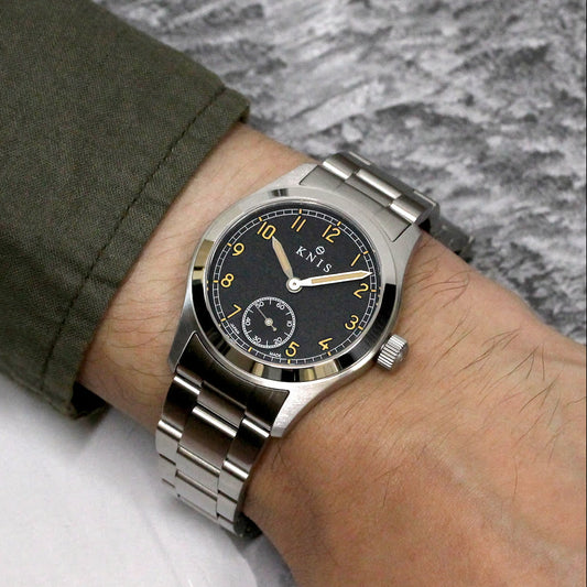 Inspired by 1940s British military watches, this timepiece combines vintage aesthetics with a modern update to suit today’s style. The clean, slim indices offer enhanced visibility while maintaining elegance, making it ideal for both business and formal settings. With its rugged yet refined design, it embodies a mature, versatile style, perfect for those who appreciate a high-quality, sophisticated look.