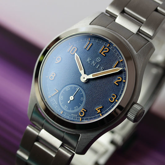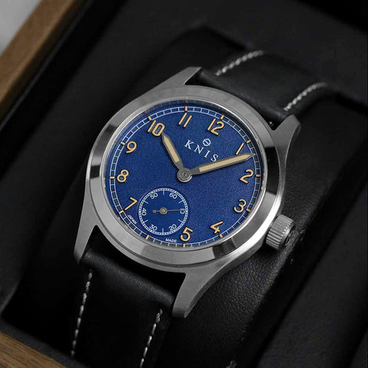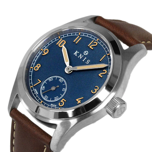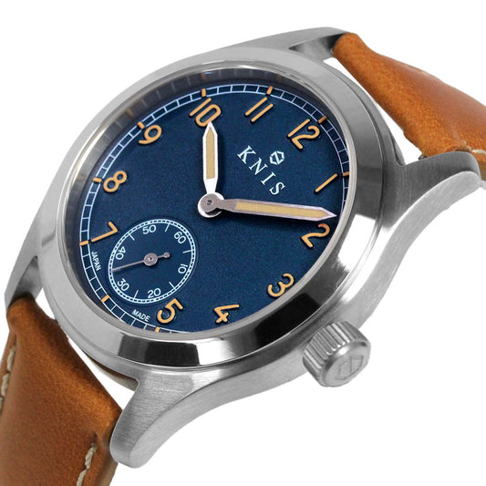 KNIS Retro Military Watch - Blue Dial with Navy Leather Strap KN003-BLNVLE