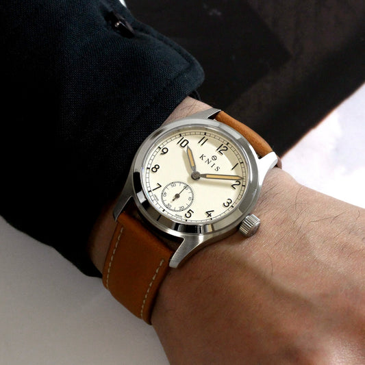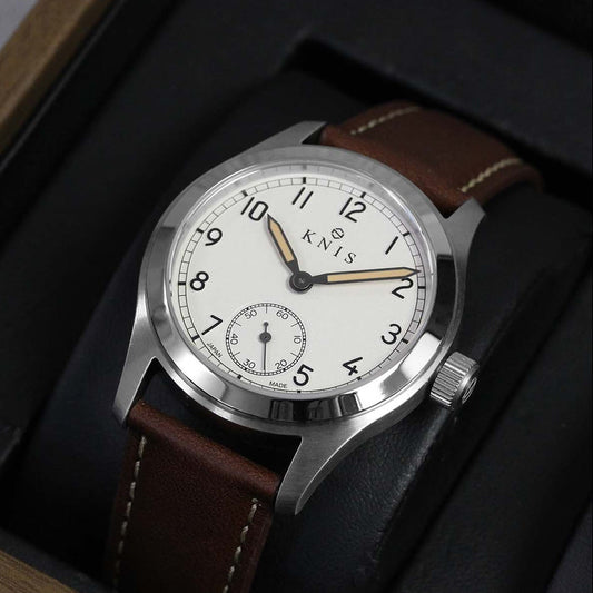 KNIS Retro Military Watch - Off-White Dial with Brown Leather Strap KN003-WHBRLE