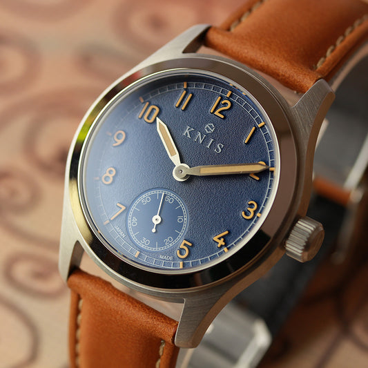 KNIS Retro Military Watch - Blue Dial with Camel Leather Strap KN003-BLCALE