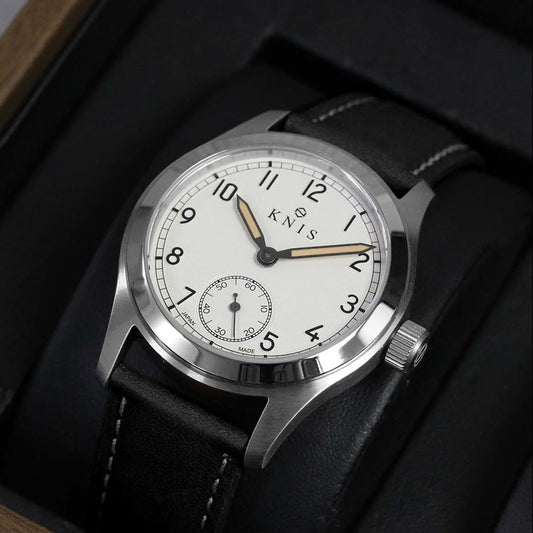 KNIS Retro Military Watch - Off-White Dial with Black Leather Strap KN003-WHBKLE