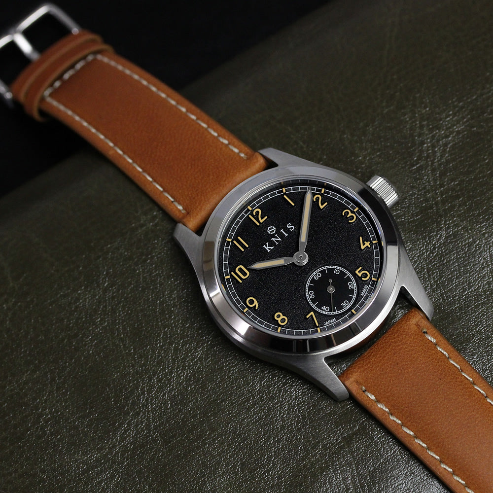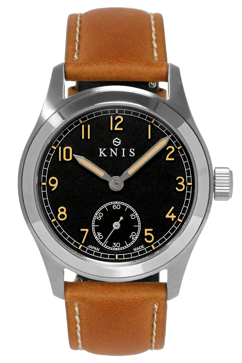 KNIS Retro Military Watch - Black Dial with Camel Leather Strap KN003-BKCALE