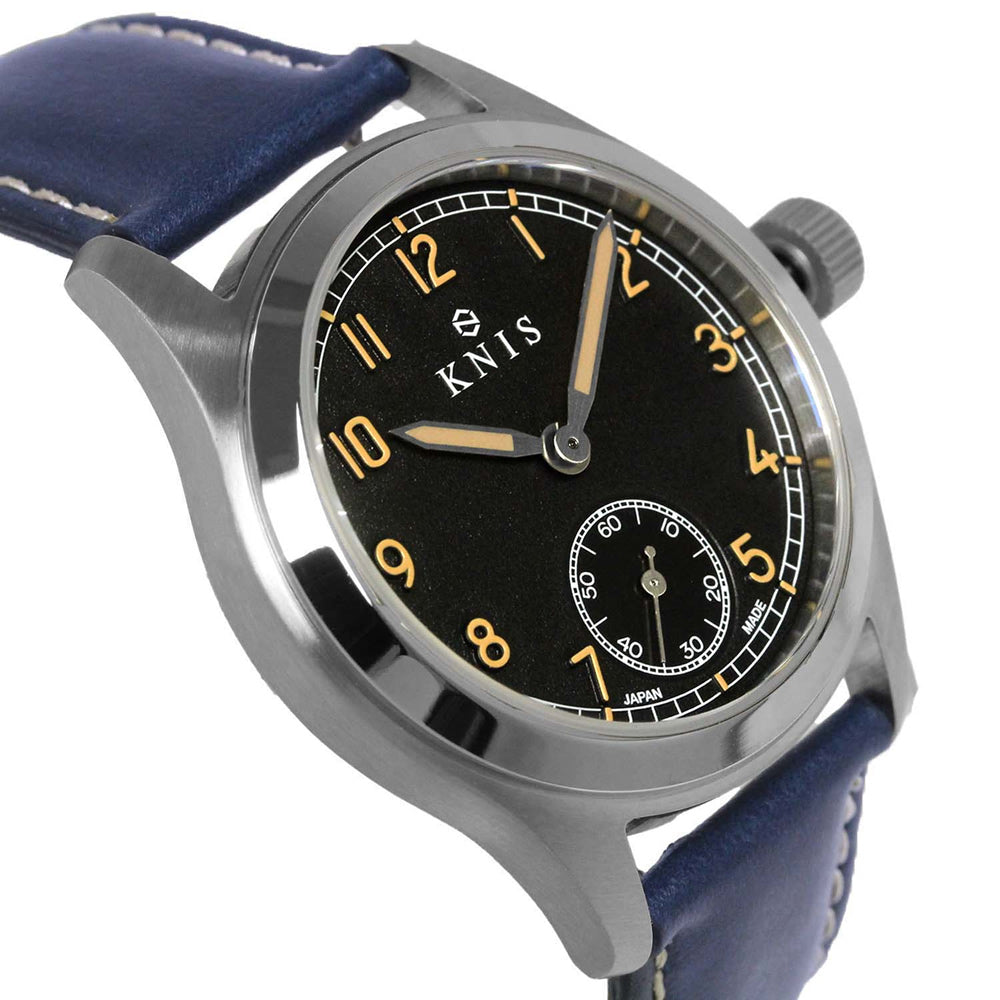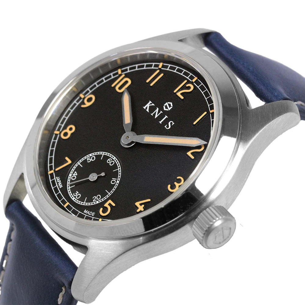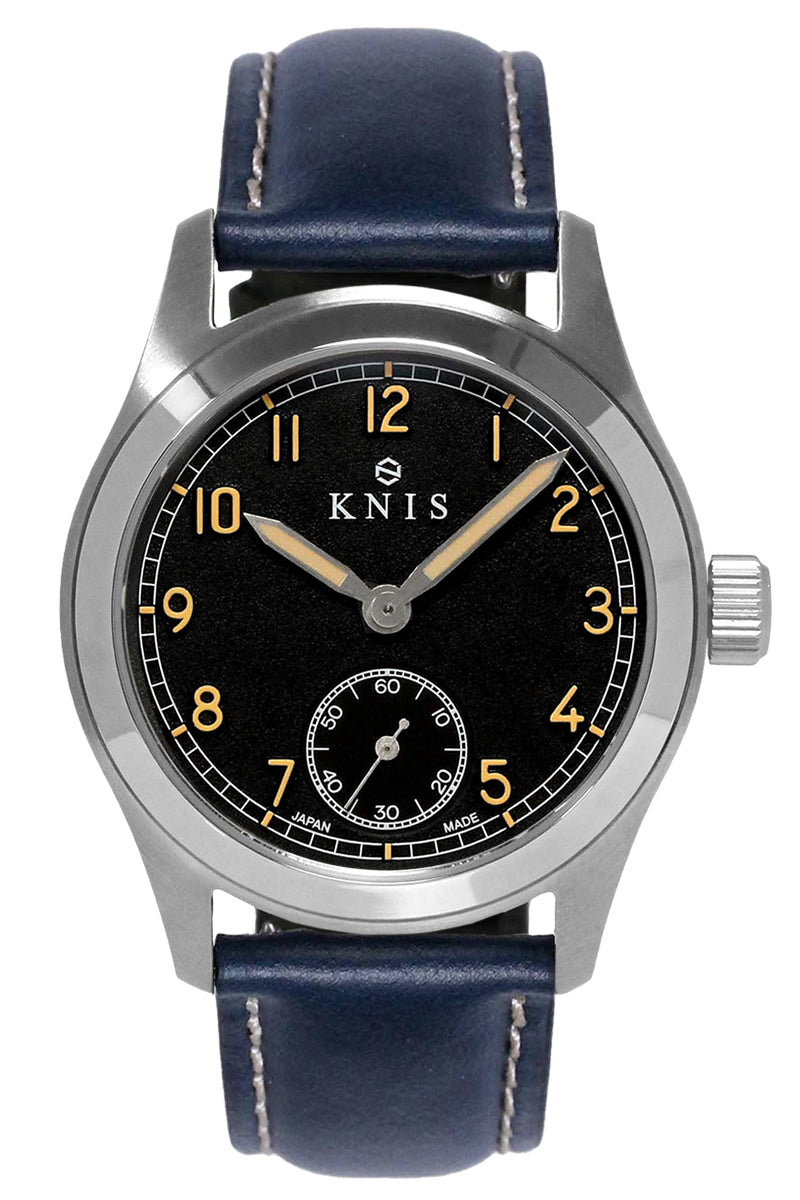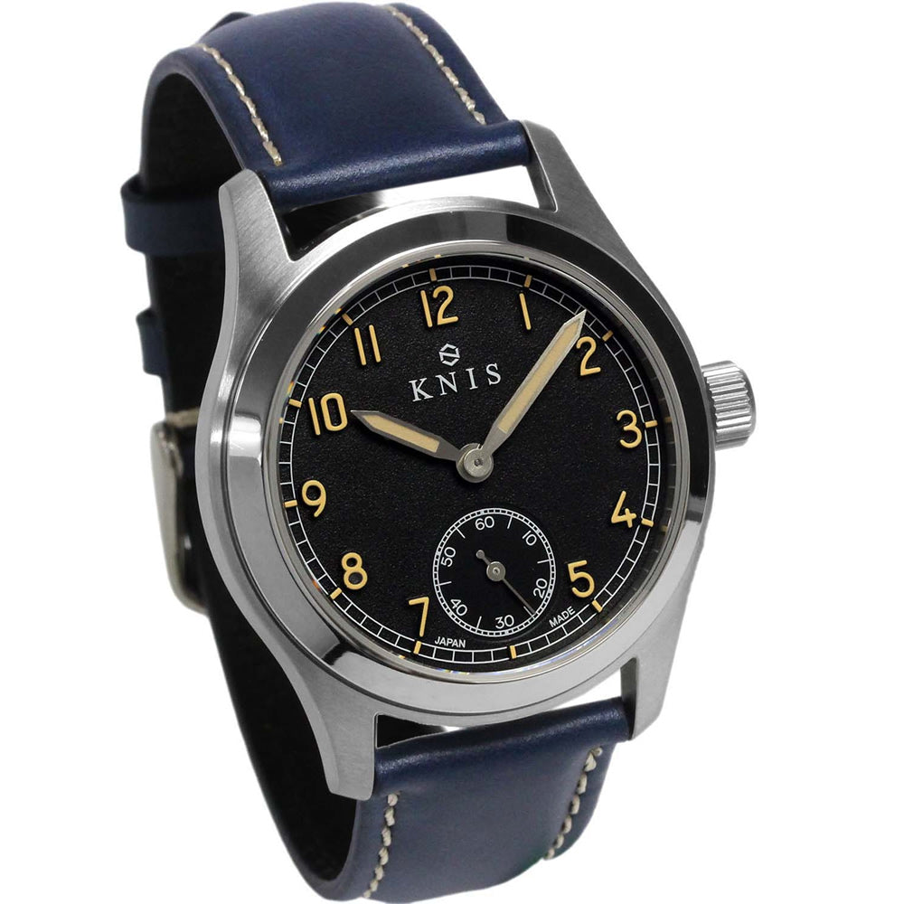 KNIS Retro Military Watch - Black Dial with Navy Leather Strap KN003-BKNVLE