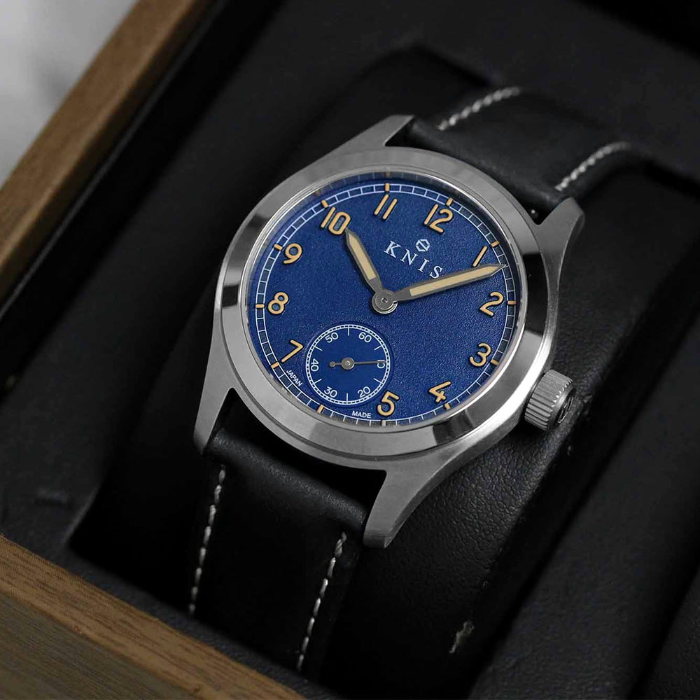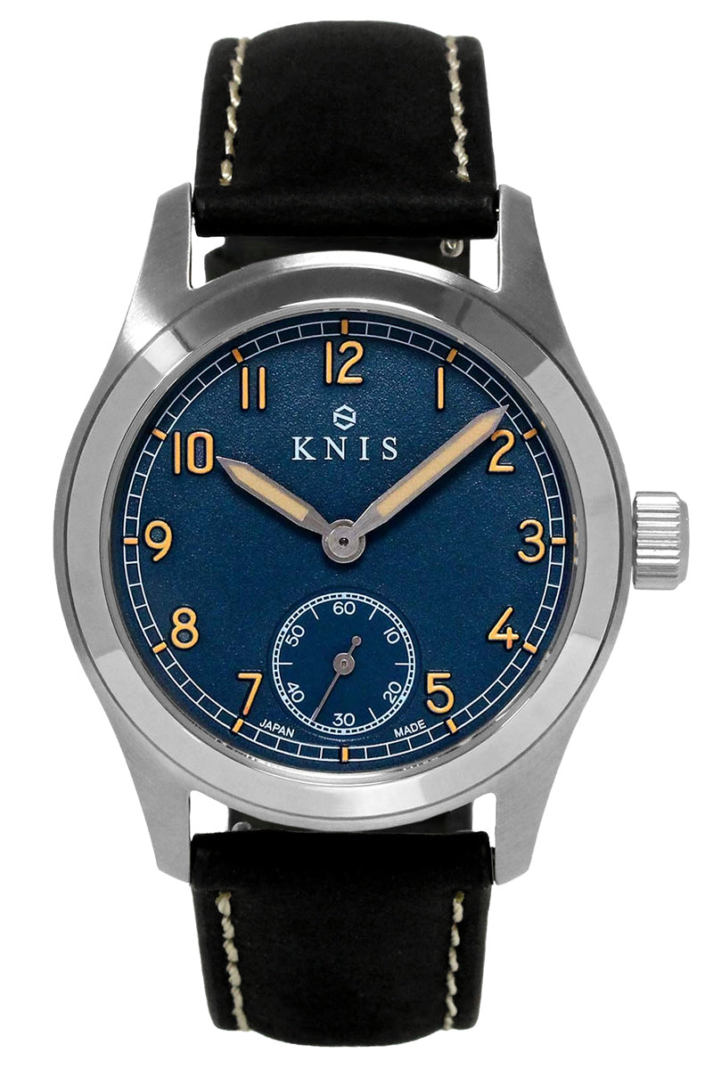 KNIS Retro Military Watch - Blue Dial with Black Leather Strap KN003-BLBKLE