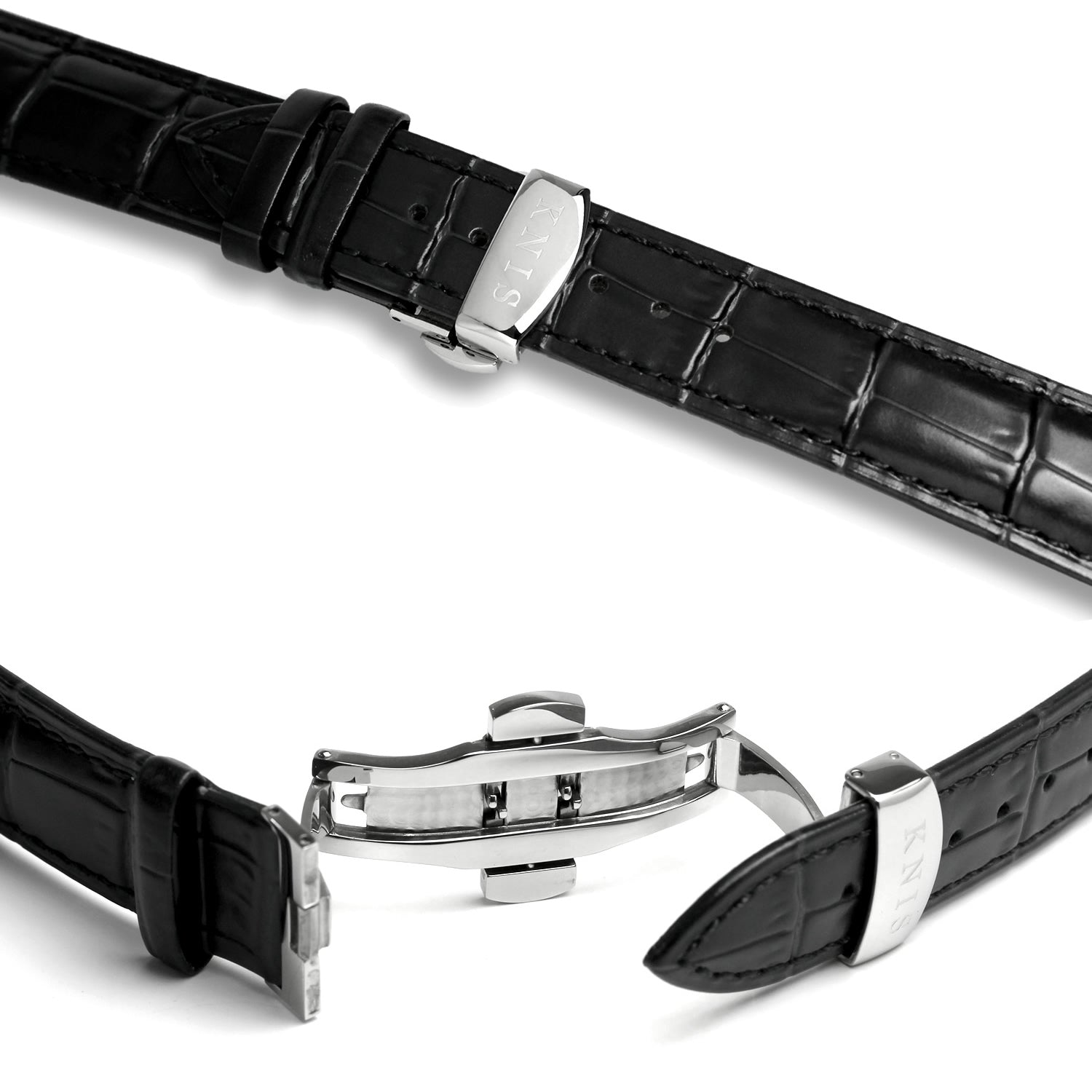The double door type D buckle has a beautiful appearance and a luxurious feel. Equipped with a D buckle, which is only used on leather straps for luxury watches, minimizes damage to the strap when putting it on and taking it off, and prevents it from slipping off.