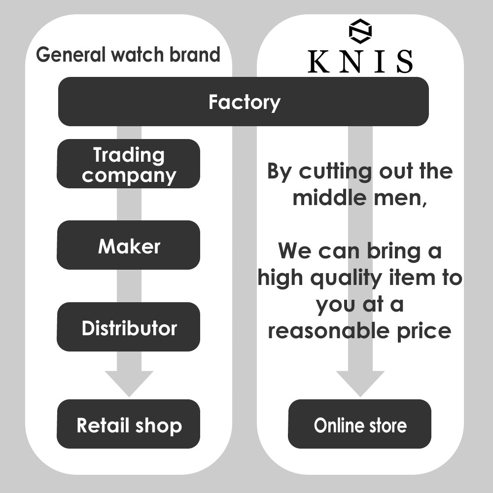 KNIS is particular about not only the movement but also the assembly of the watch in Japan. The quality of "Made in Japan" is a brand that can be proud to the world. You can rest assured that we will provide after-sales follow-up after your purchase.
