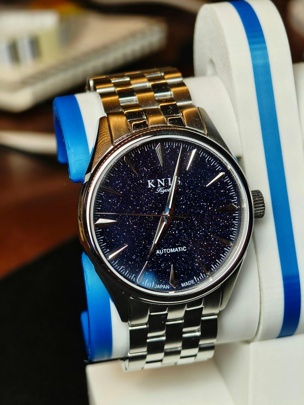 大きすぎず小さすぎない、かつ文字盤のアベンチュリンもしっかりと存在感を主張しています。