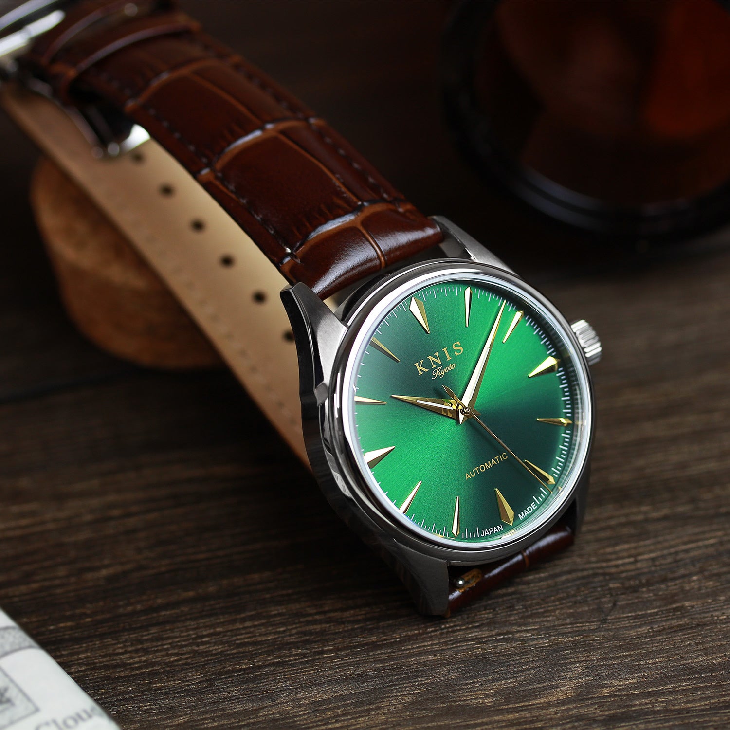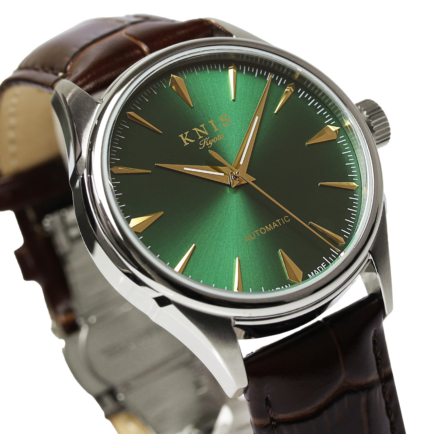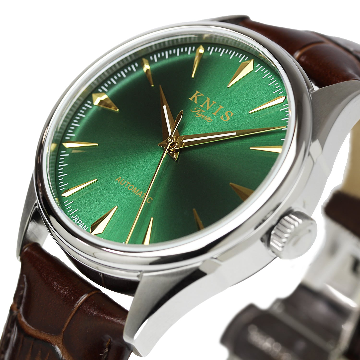 KNIS 自動巻き サンレイダイアル グリーン ブラウン レザー KN001-GRBRLE