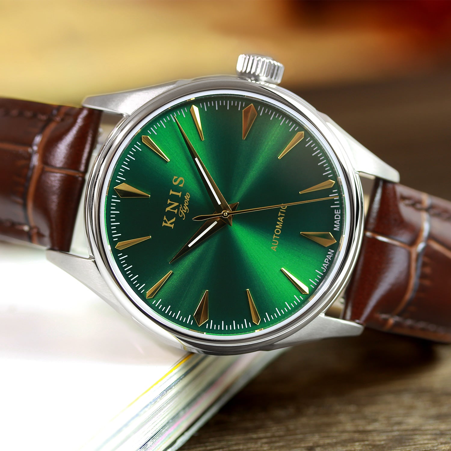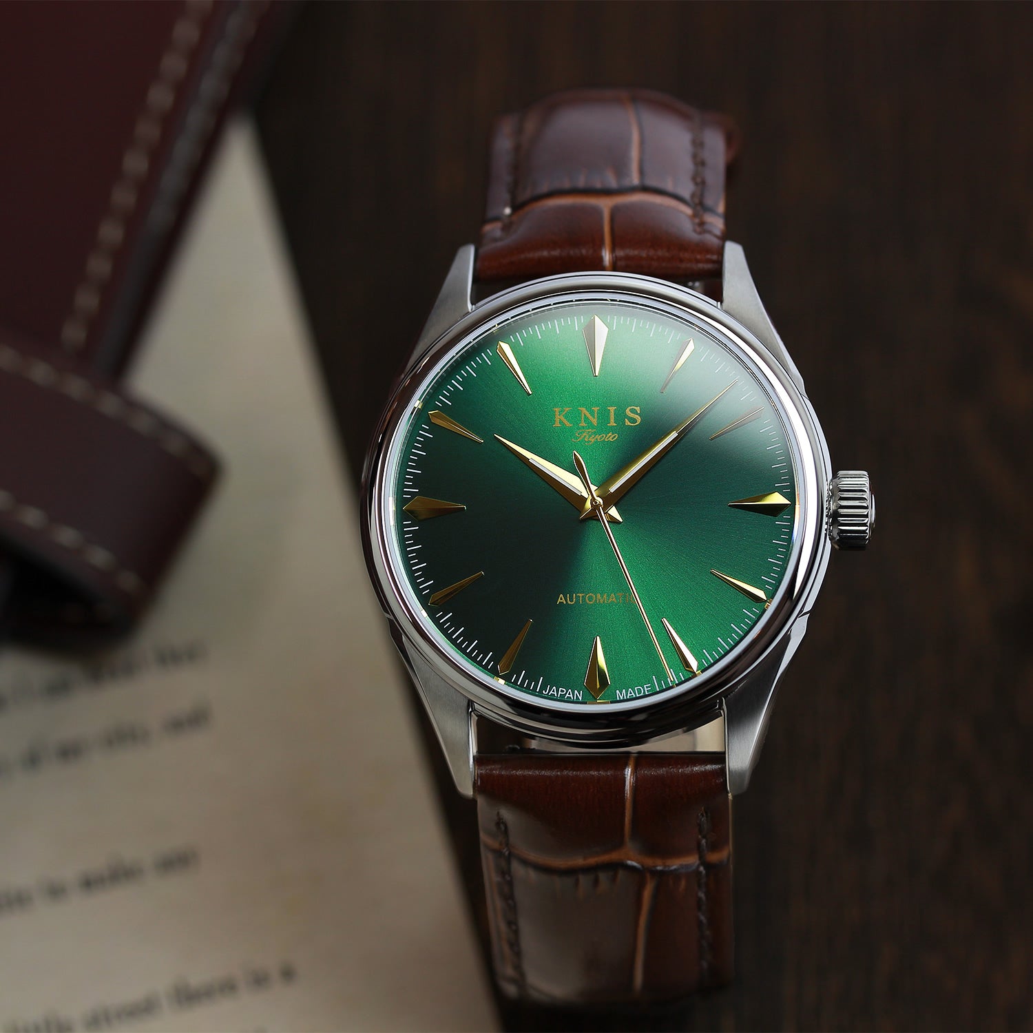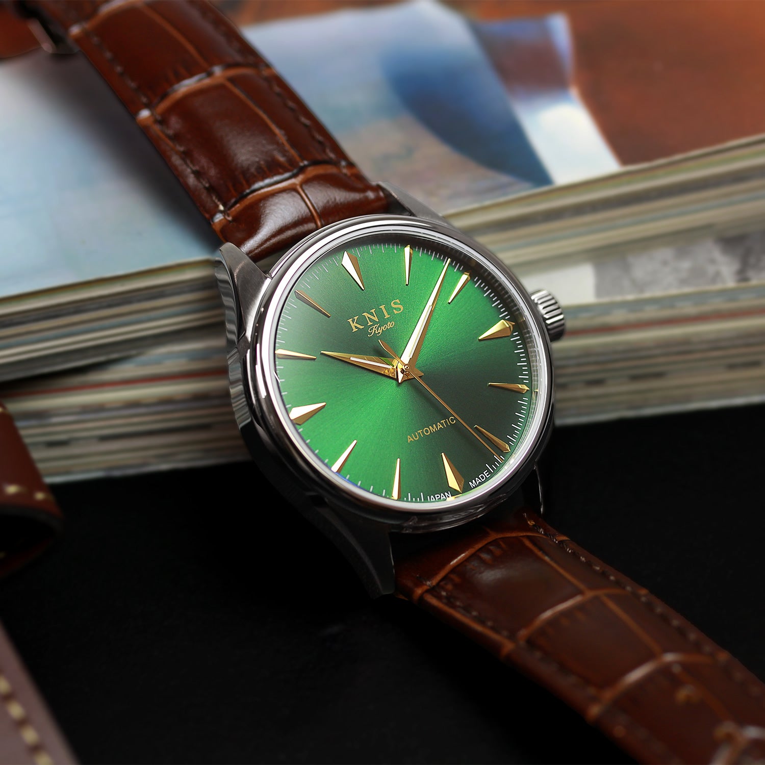 KNIS 自動巻き サンレイダイアル グリーン ブラウン レザー KN001-GRBRLE