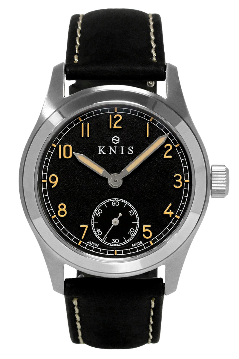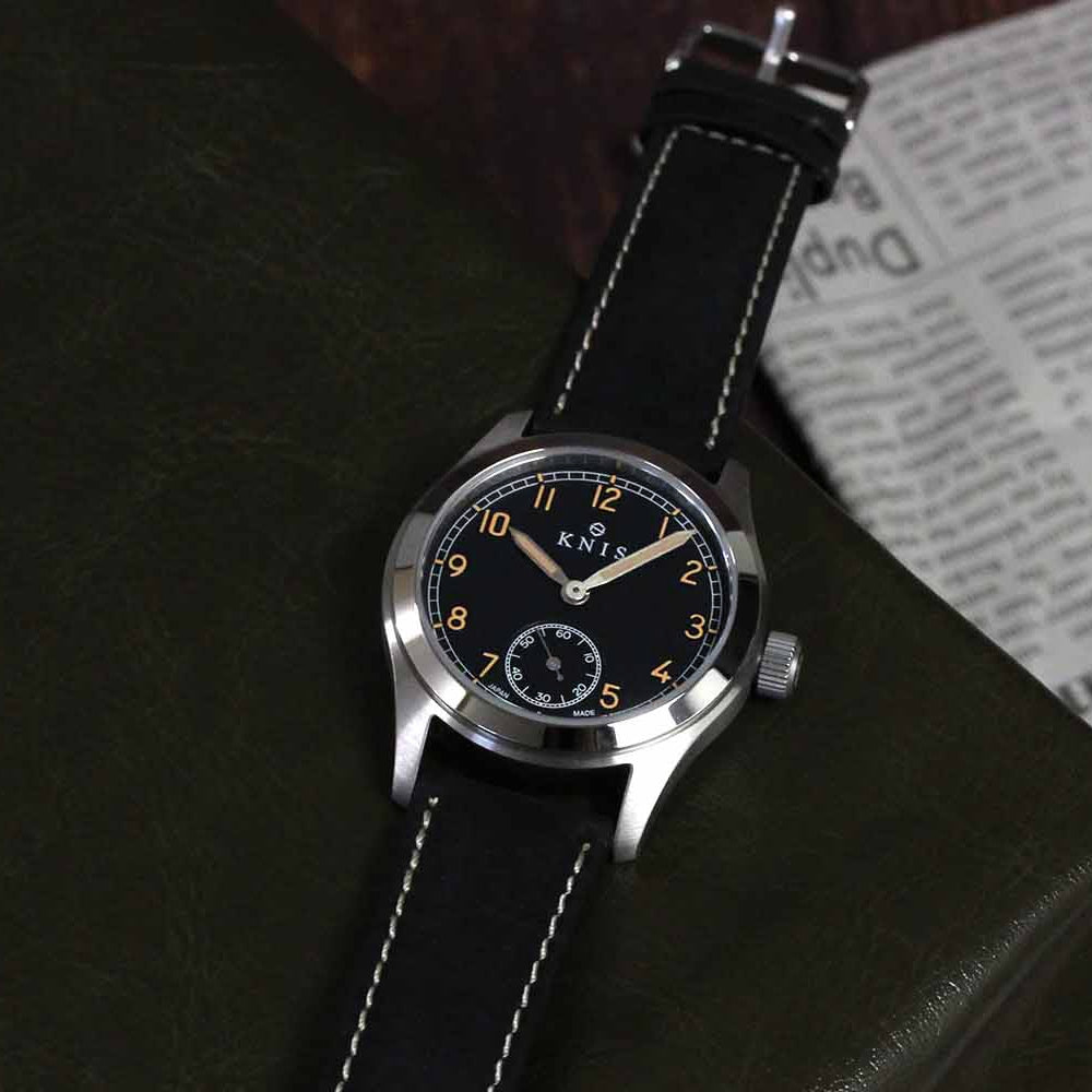 KNIS レトロミリタリーウォッチ ブラックダイヤル ブラックレザーベルト KN003-BKBKLE