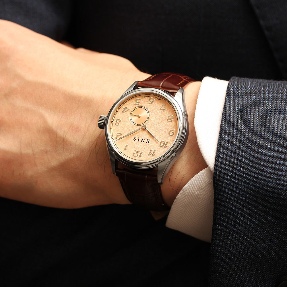 KNIS KODOU 自動巻き 日本製 スモールセコンド レザー サーモンピンク 桜霞 KN009-SPKBRLE